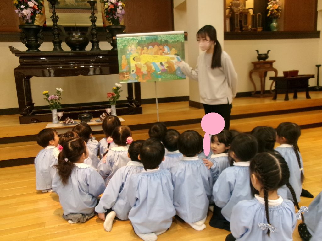 園長先生が掛図を使って、お釈迦様の物語をお話してくださいました。