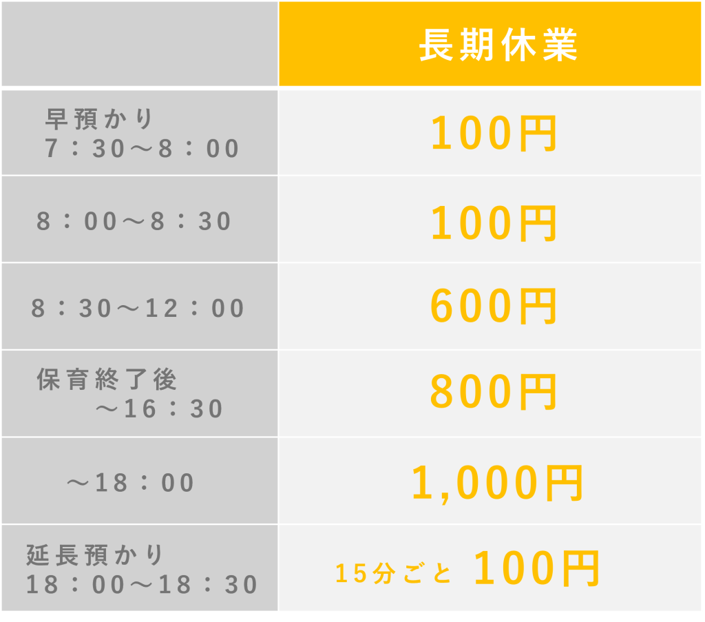 当園では通常の幼稚園教育時間の開始前や終了後、夏休みなどの長期休業日に園児をお預かりしています。